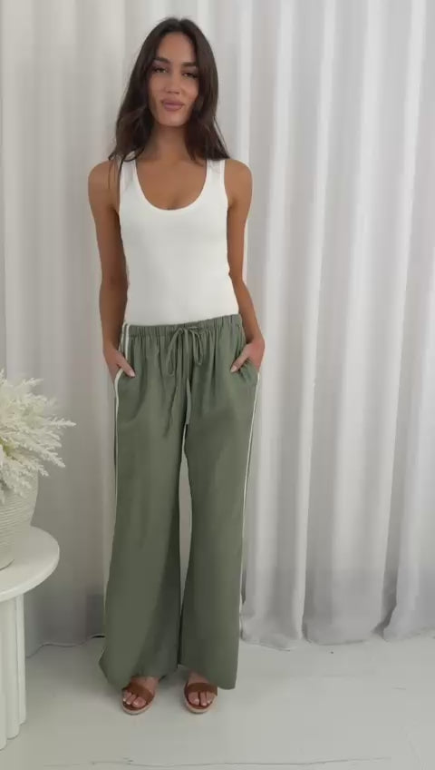 Haven Linen Racer Pant Khaki